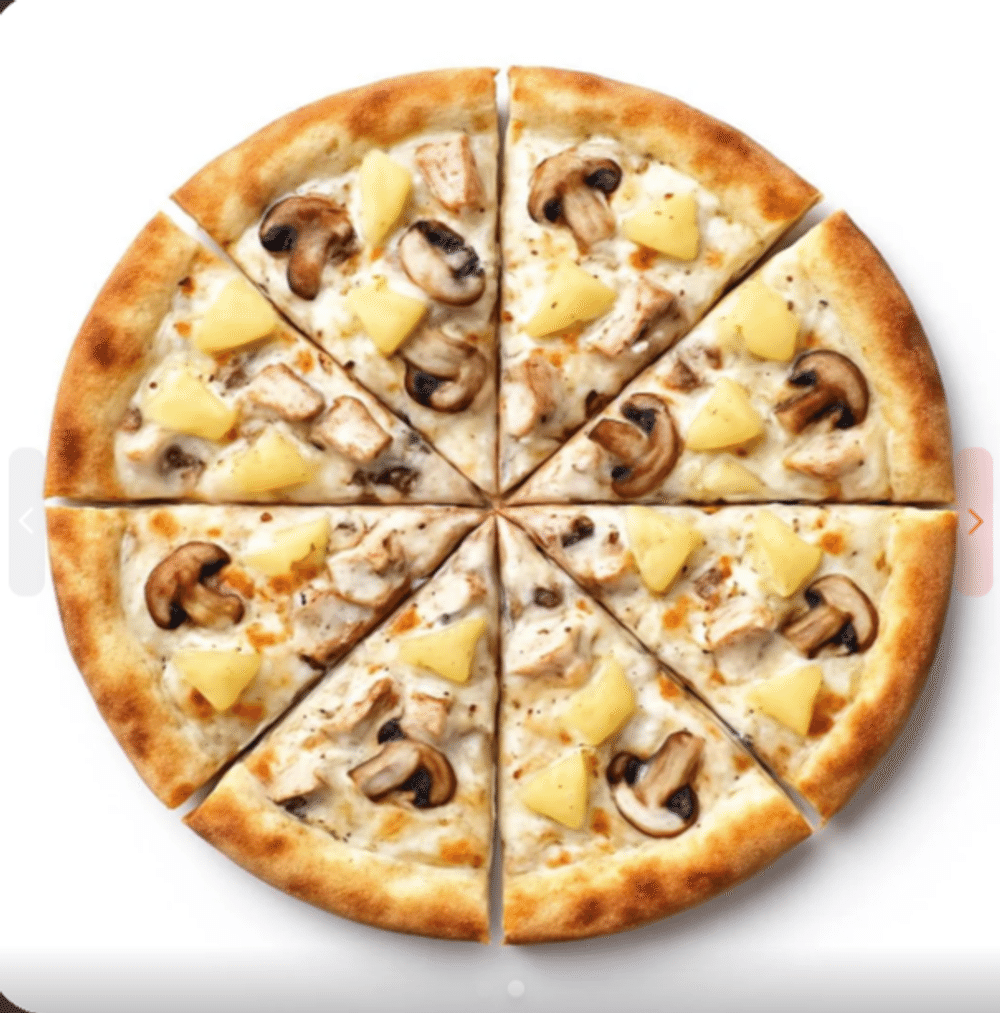 Копченая курица, шампиньоны, ананасы, сливочный соус, моцарелла 540 гр