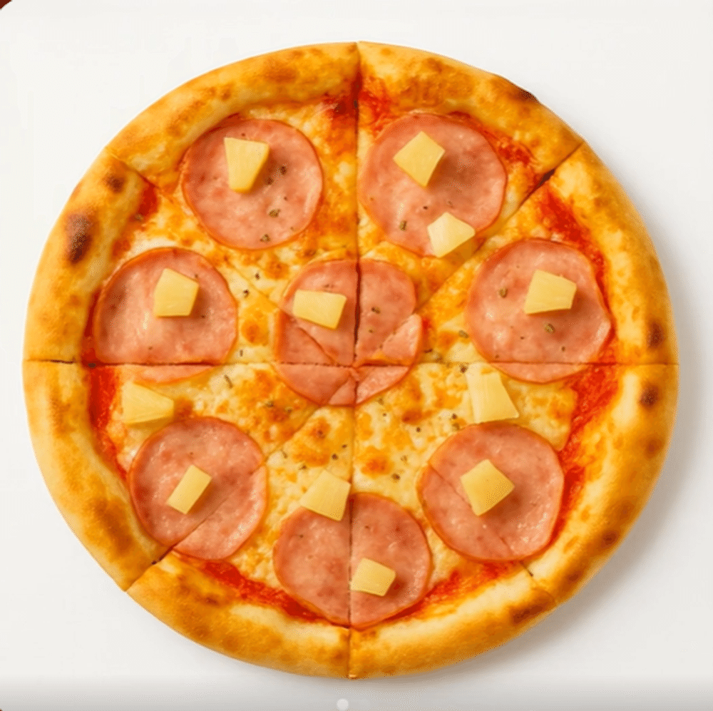 Ветчина, ананасы, томатный соус, моцарелла, масло чесночное 365 гр / 510 гр