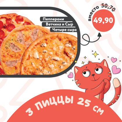 Пицца «Салями» 25 см — мягкое тесто, томатный соус, 100% моцарелла и сочная салями.