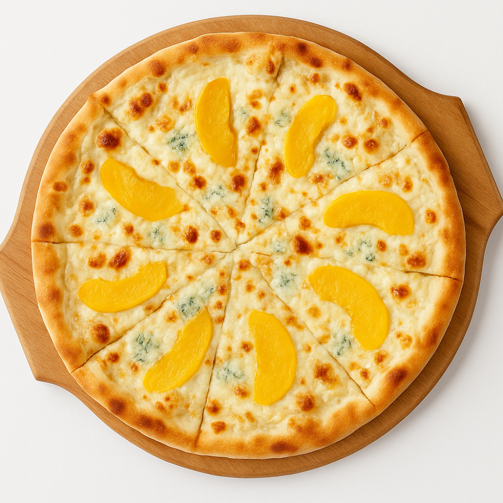Персик, сыр с голубой плесенью, моцарелла, соус сливочный, масло чесночное 345 гр / 490 гр